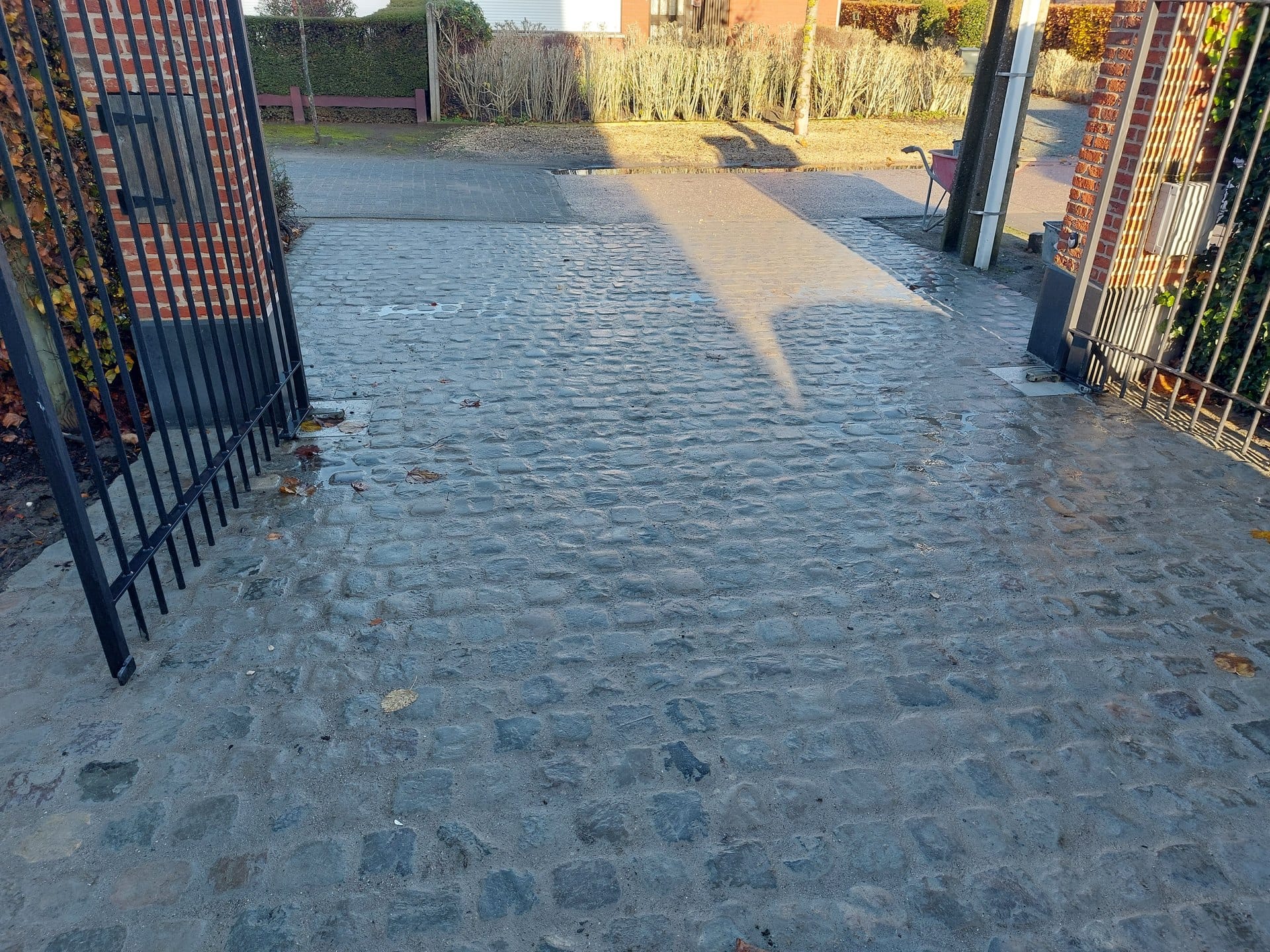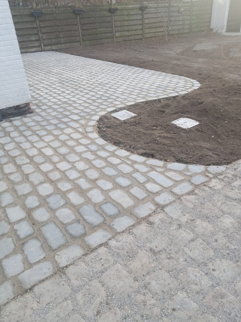 - Drainerend zandbed: De kasseien worden gezet in een bedding die overtollig water vlot naar de diepere grondlagen voert
