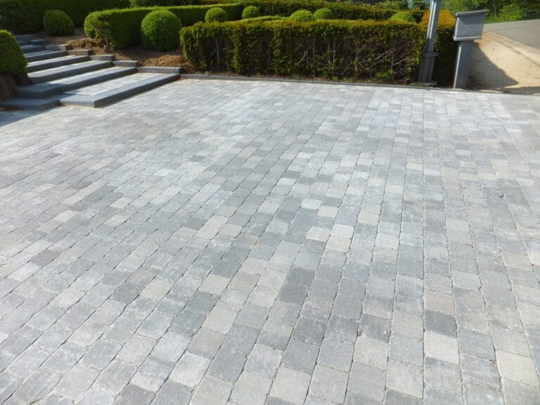 Trappen in beton met betonklinkers (zwart grijs genuanceerd